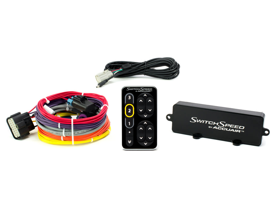 Le contrôleur SwitchSpeed ™ permet un contrôle manuel complet de chaque amortisseur pneumatique individuellement, ainsi que du contrôle des ressorts pneumatiques avant et arrière par «paires».