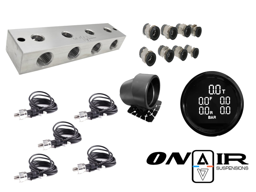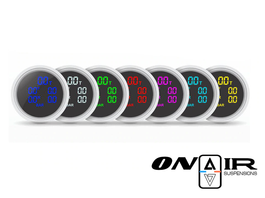 ON AIR est le seul à vous proposez un Pack Complet exclusif qui permet d'équiper TOUT TYPE de système Air ride d'un manomètre de pression digital!